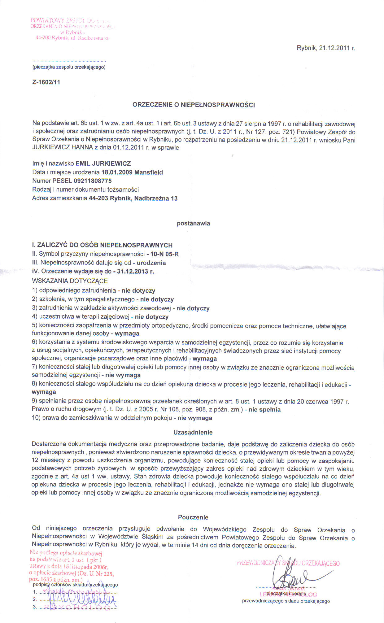Na potrzeby i rehabilitacje Emila Jurkiewicz